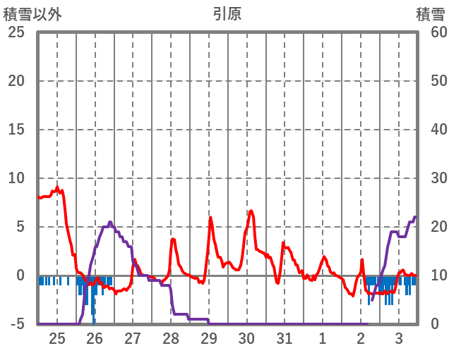 | 日 | 時 | 気温 | 降水 | 風向/風速 | 日照 | 積雪 | 降雪 |