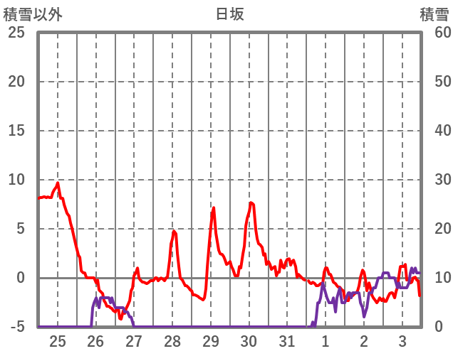 | 日 | 時 | 気温 | 降水 | 風向/風速 | 日照 | 積雪 | 降雪 |