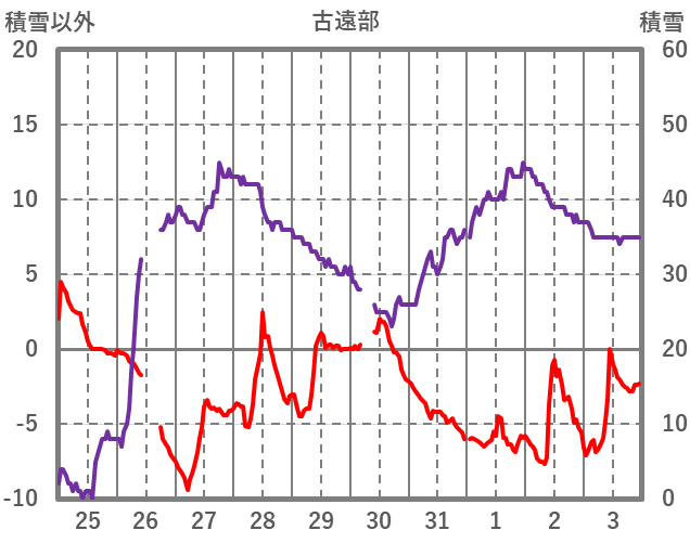 | 日 | 時 | 気温 | 降水 | 風向/風速 | 日照 | 積雪 | 降雪 |