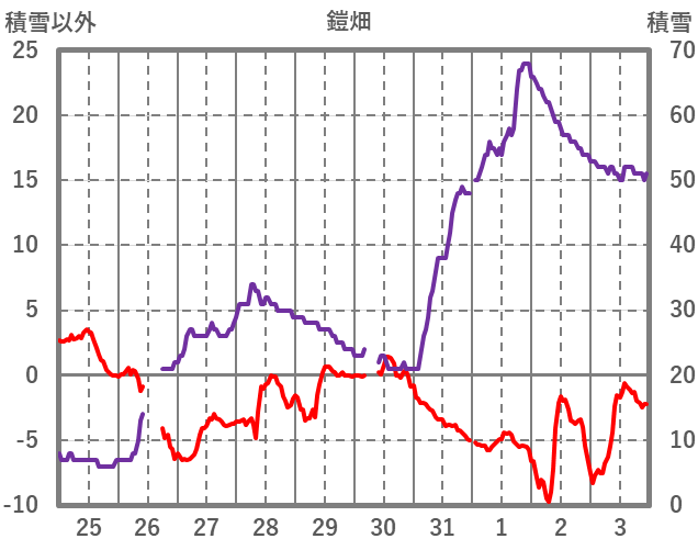 | 日 | 時 | 気温 | 降水 | 風向/風速 | 日照 | 積雪 | 降雪 |