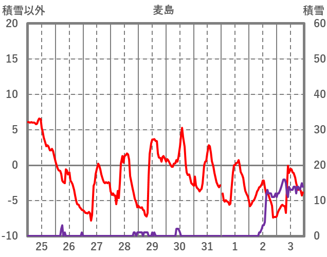 | 日 | 時 | 気温 | 降水 | 風向/風速 | 日照 | 積雪 | 降雪 |