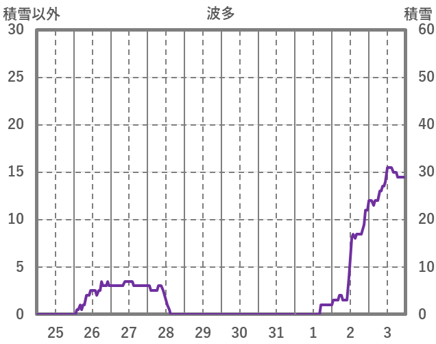 | 日 | 時 | 気温 | 降水 | 風向/風速 | 日照 | 積雪 | 降雪 |