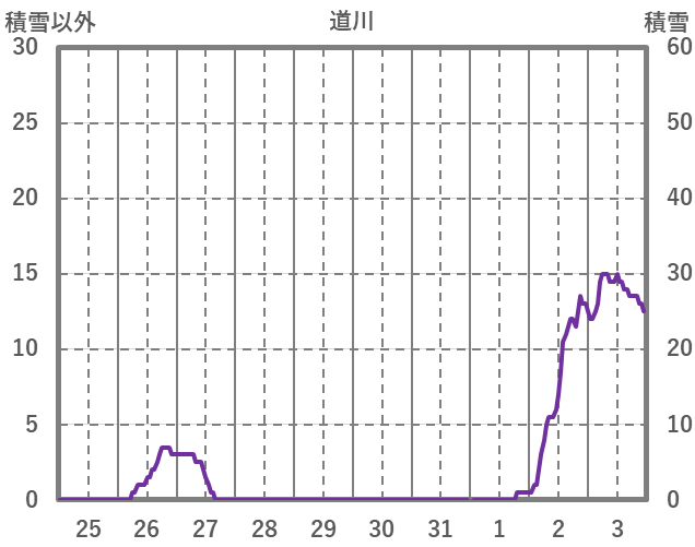 | 日 | 時 | 気温 | 降水 | 風向/風速 | 日照 | 積雪 | 降雪 |