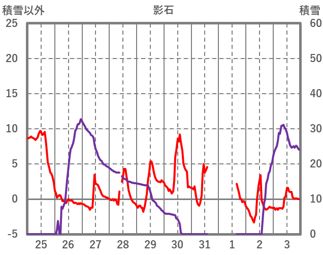 | 日 | 時 | 気温 | 降水 | 風向/風速 | 日照 | 積雪 | 降雪 |