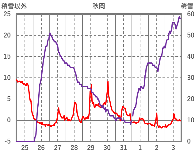 | 日 | 時 | 気温 | 降水 | 風向/風速 | 日照 | 積雪 | 降雪 |