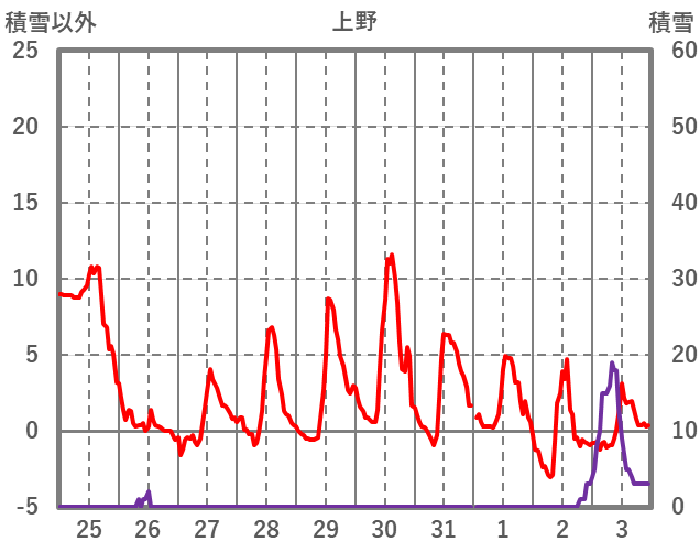| 日 | 時 | 気温 | 降水 | 風向/風速 | 日照 | 積雪 | 降雪 |