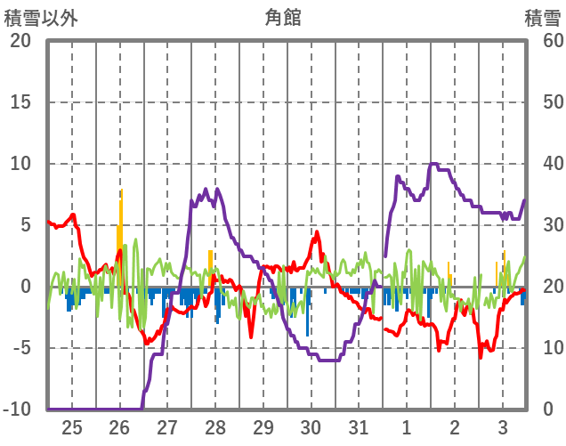 | 日 | 時 | 気温 | 降水 | 風向/風速 | 日照 | 積雪 | 降雪 |