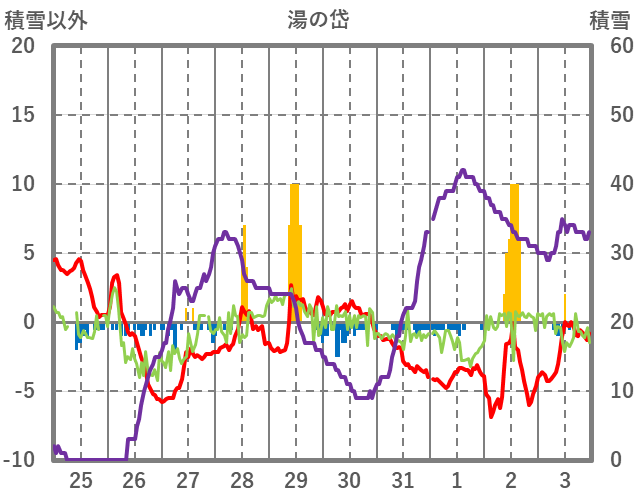 | 日 | 時 | 気温 | 降水 | 風向/風速 | 日照 | 積雪 | 降雪 |