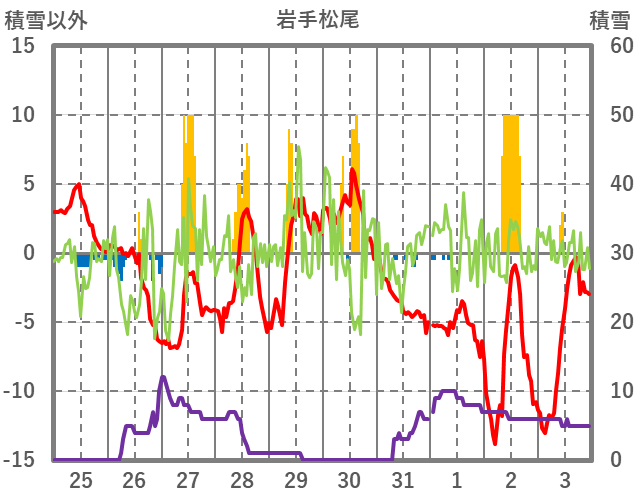 | 日 | 時 | 気温 | 降水 | 風向/風速 | 日照 | 積雪 | 降雪 |