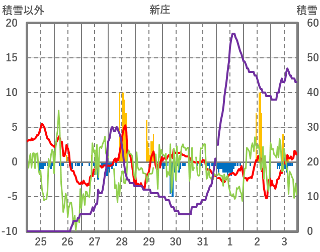 | 日 | 時 | 気温 | 降水 | 風向/風速 | 日照 | 積雪 | 降雪 |