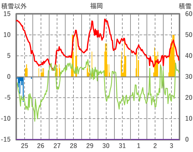 | 日 | 時 | 気温 | 降水 | 風向/風速 | 日照 | 積雪 | 降雪 |
