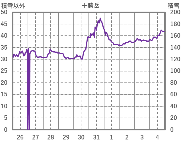 | 日 | 時 | 気温 | 降水 | 風向/風速 | 日照 | 積雪 | 降雪 |