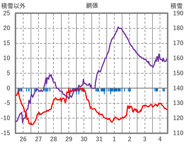 | 日 | 時 | 気温 | 降水 | 風向/風速 | 日照 | 積雪 | 降雪 |