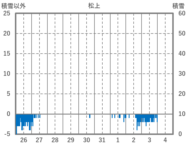 | 日 | 時 | 気温 | 降水 | 風向/風速 | 日照 | 積雪 | 降雪 |