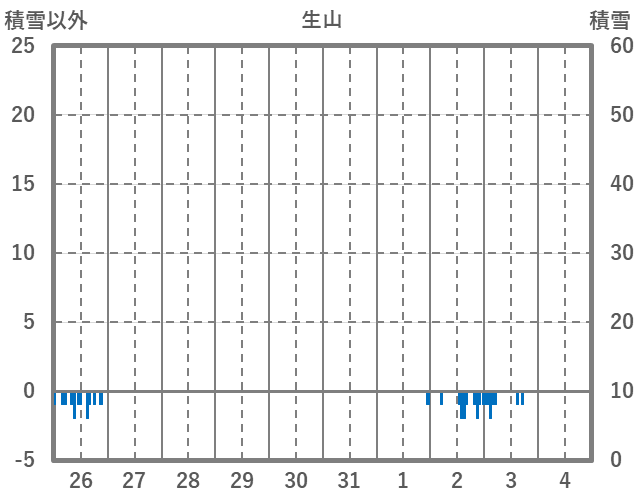 | 日 | 時 | 気温 | 降水 | 風向/風速 | 日照 | 積雪 | 降雪 |