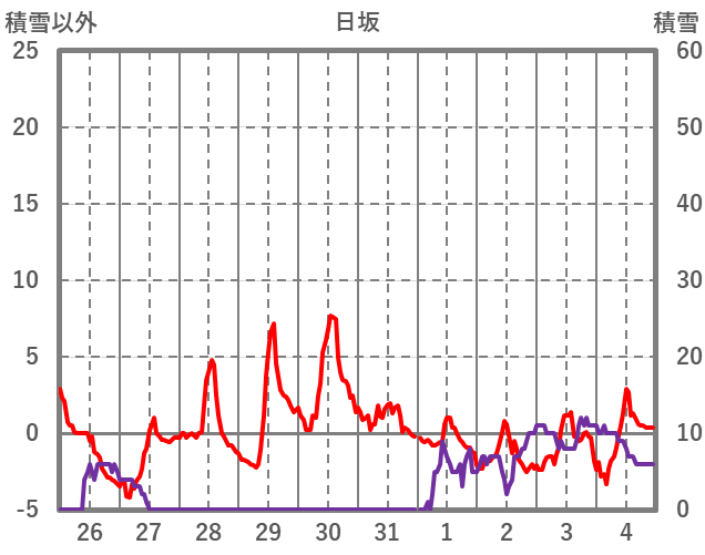 | 日 | 時 | 気温 | 降水 | 風向/風速 | 日照 | 積雪 | 降雪 |