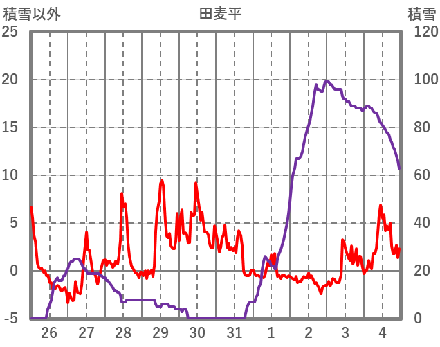 | 日 | 時 | 気温 | 降水 | 風向/風速 | 日照 | 積雪 | 降雪 |