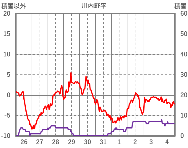 | 日 | 時 | 気温 | 降水 | 風向/風速 | 日照 | 積雪 | 降雪 |