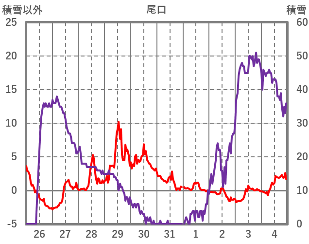 | 日 | 時 | 気温 | 降水 | 風向/風速 | 日照 | 積雪 | 降雪 |