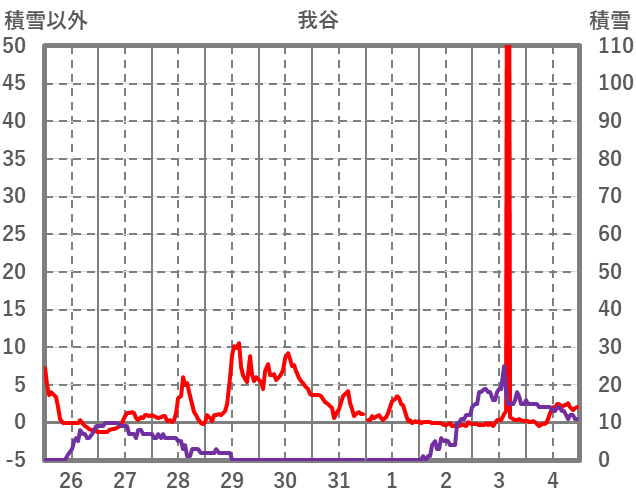 | 日 | 時 | 気温 | 降水 | 風向/風速 | 日照 | 積雪 | 降雪 |