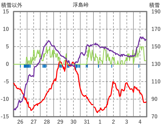 | 日 | 時 | 気温 | 降水 | 風向/風速 | 日照 | 積雪 | 降雪 |