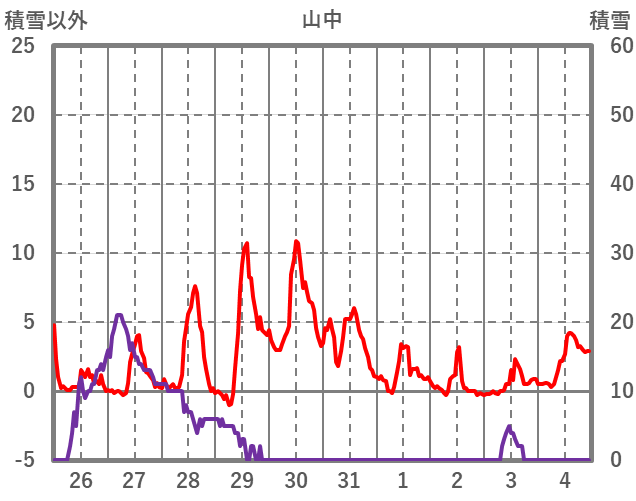 | 日 | 時 | 気温 | 降水 | 風向/風速 | 日照 | 積雪 | 降雪 |