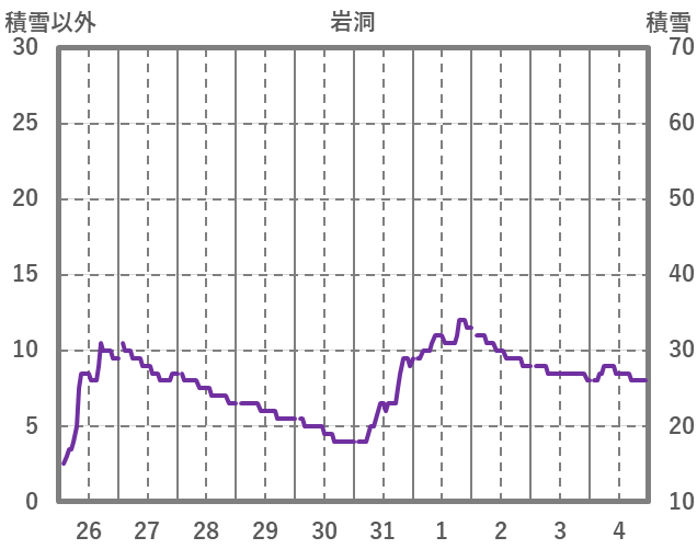 | 日 | 時 | 気温 | 降水 | 風向/風速 | 日照 | 積雪 | 降雪 |