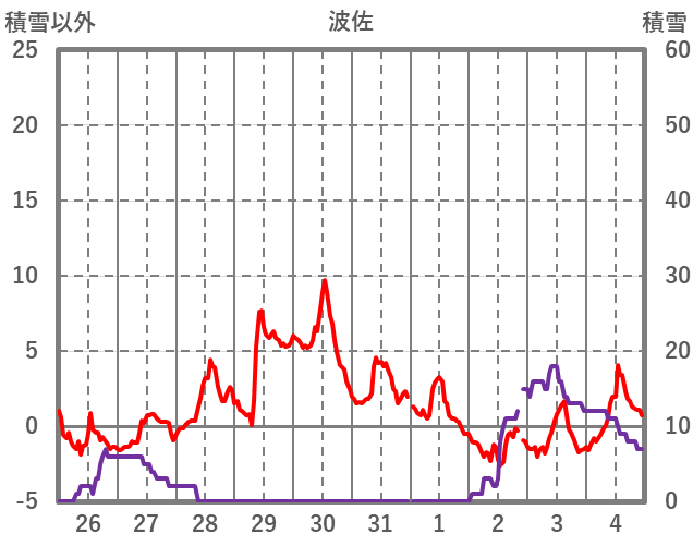 | 日 | 時 | 気温 | 降水 | 風向/風速 | 日照 | 積雪 | 降雪 |