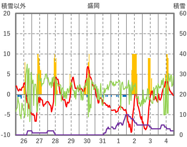 | 日 | 時 | 気温 | 降水 | 風向/風速 | 日照 | 積雪 | 降雪 |
