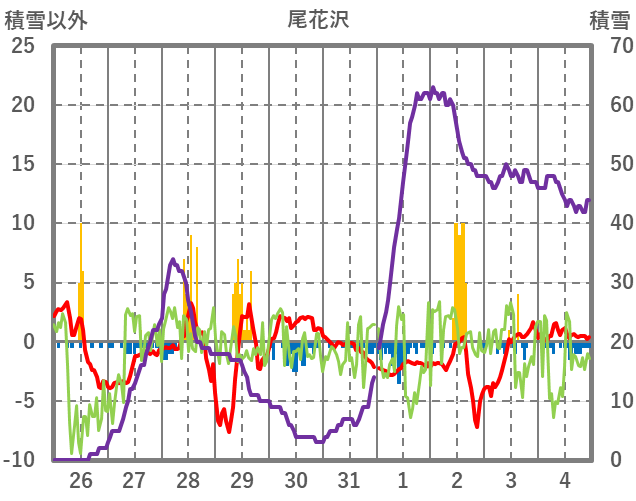 | 日 | 時 | 気温 | 降水 | 風向/風速 | 日照 | 積雪 | 降雪 |