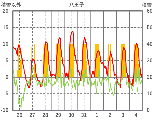 | 日 | 時 | 気温 | 降水 | 風向/風速 | 日照 | 積雪 | 降雪 |