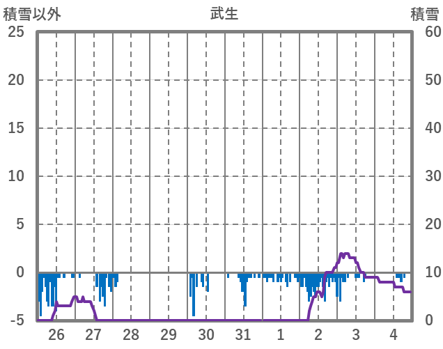 | 日 | 時 | 気温 | 降水 | 風向/風速 | 日照 | 積雪 | 降雪 |