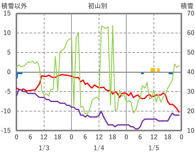 | 日 | 時 | 気温 | 降水 | 風向/風速 | 日照 | 積雪 | 降雪 |