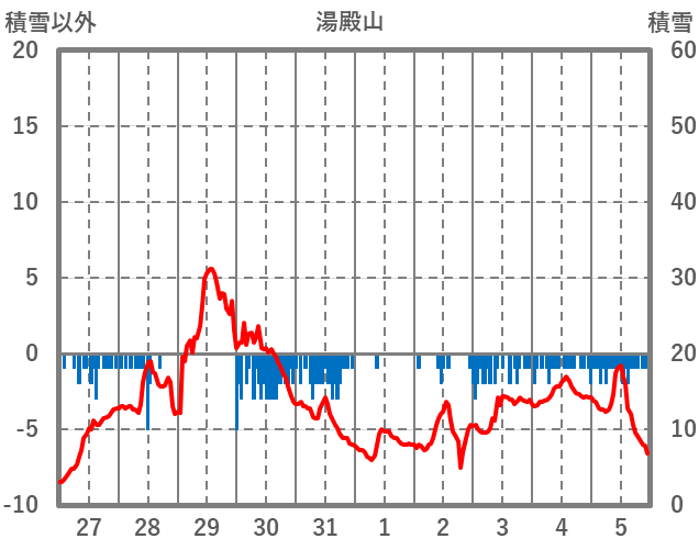 | 日 | 時 | 気温 | 降水 | 風向/風速 | 日照 | 積雪 | 降雪 |