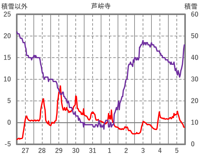 | 日 | 時 | 気温 | 降水 | 風向/風速 | 日照 | 積雪 | 降雪 |