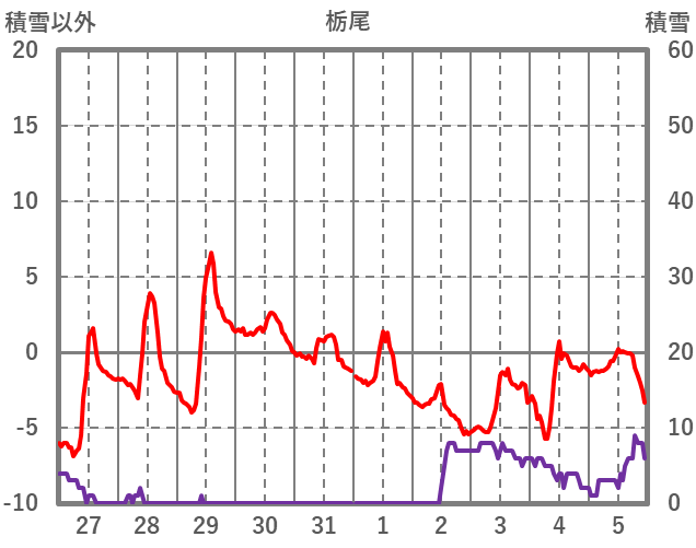 | 日 | 時 | 気温 | 降水 | 風向/風速 | 日照 | 積雪 | 降雪 |