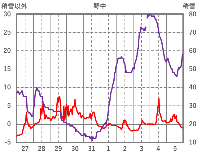 | 日 | 時 | 気温 | 降水 | 風向/風速 | 日照 | 積雪 | 降雪 |