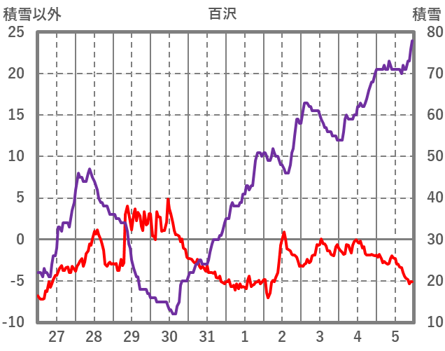 | 日 | 時 | 気温 | 降水 | 風向/風速 | 日照 | 積雪 | 降雪 |