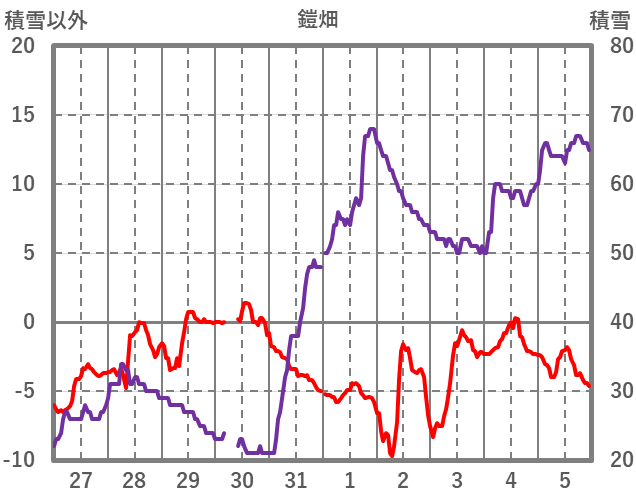 | 日 | 時 | 気温 | 降水 | 風向/風速 | 日照 | 積雪 | 降雪 |