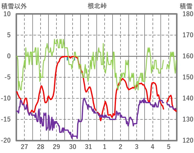 | 日 | 時 | 気温 | 降水 | 風向/風速 | 日照 | 積雪 | 降雪 |