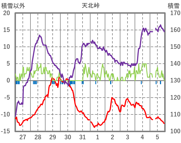 | 日 | 時 | 気温 | 降水 | 風向/風速 | 日照 | 積雪 | 降雪 |