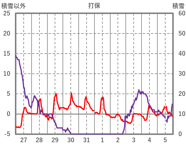 | 日 | 時 | 気温 | 降水 | 風向/風速 | 日照 | 積雪 | 降雪 |