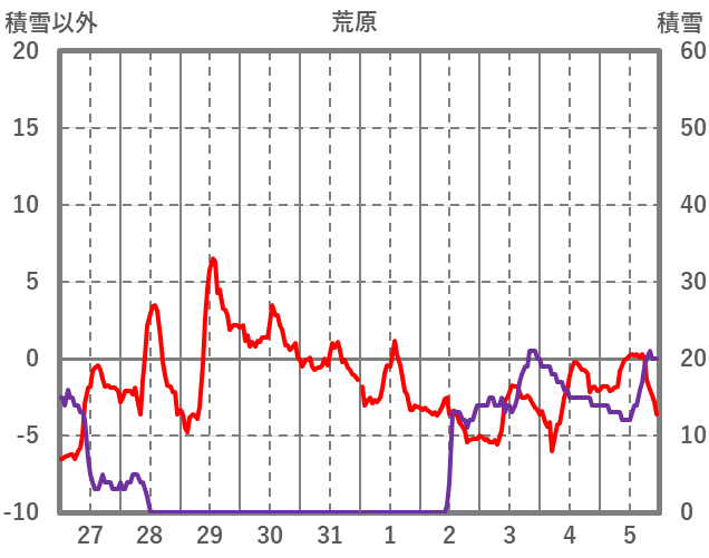 | 日 | 時 | 気温 | 降水 | 風向/風速 | 日照 | 積雪 | 降雪 |