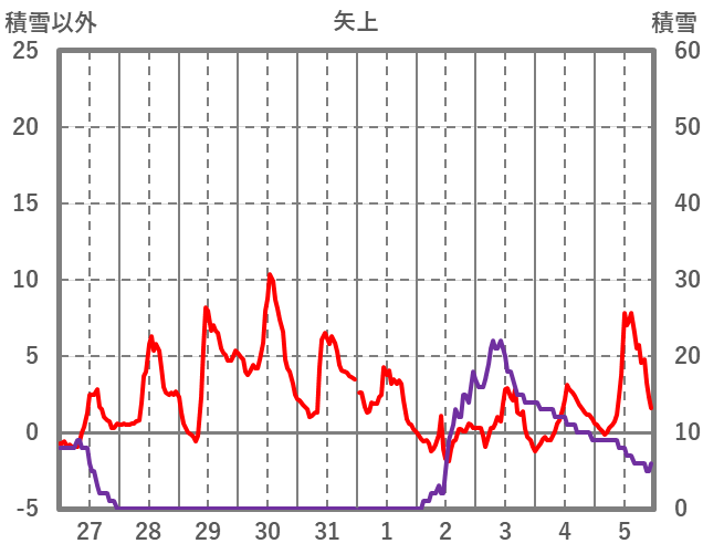 | 日 | 時 | 気温 | 降水 | 風向/風速 | 日照 | 積雪 | 降雪 |