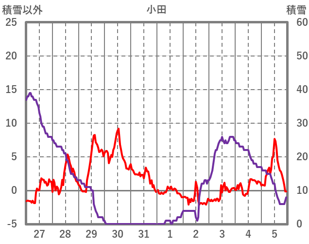 | 日 | 時 | 気温 | 降水 | 風向/風速 | 日照 | 積雪 | 降雪 |