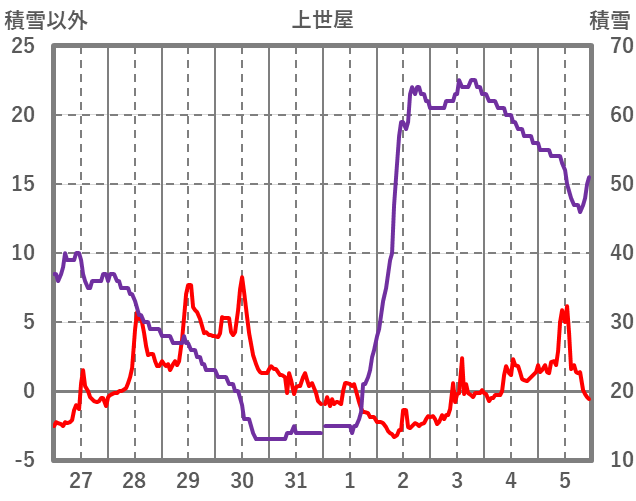| 日 | 時 | 気温 | 降水 | 風向/風速 | 日照 | 積雪 | 降雪 |