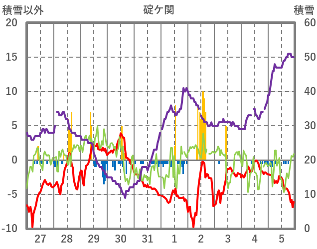 | 日 | 時 | 気温 | 降水 | 風向/風速 | 日照 | 積雪 | 降雪 |
