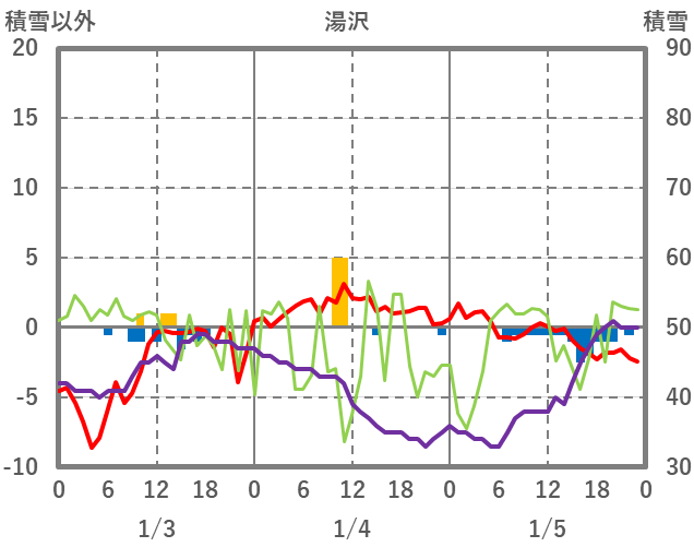 | 日 | 時 | 気温 | 降水 | 風向/風速 | 日照 | 積雪 | 降雪 |