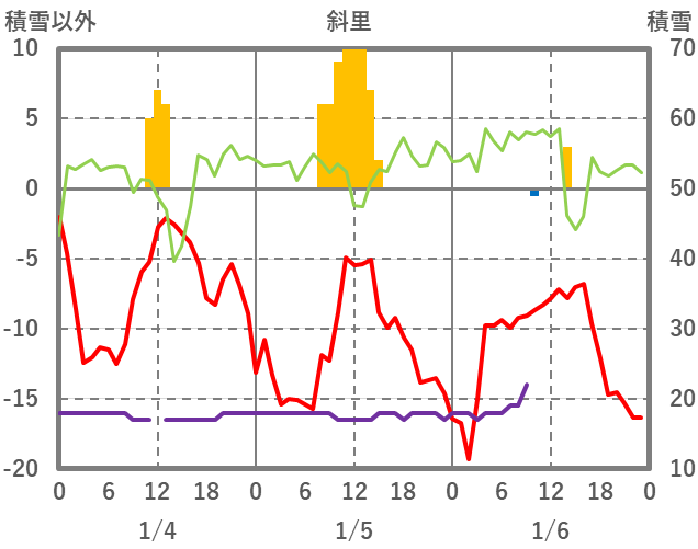 | 日 | 時 | 気温 | 降水 | 風向/風速 | 日照 | 積雪 | 降雪 |