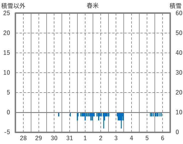 | 日 | 時 | 気温 | 降水 | 風向/風速 | 日照 | 積雪 | 降雪 |